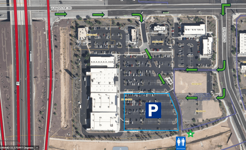 Enter event on south 59th Ave off of W Baseline Rd. From the 202 freeway, exit on W Baseline Rd, head east to 59th Ave, turn south on 59th Ave, turn right into Laveen Park Place.